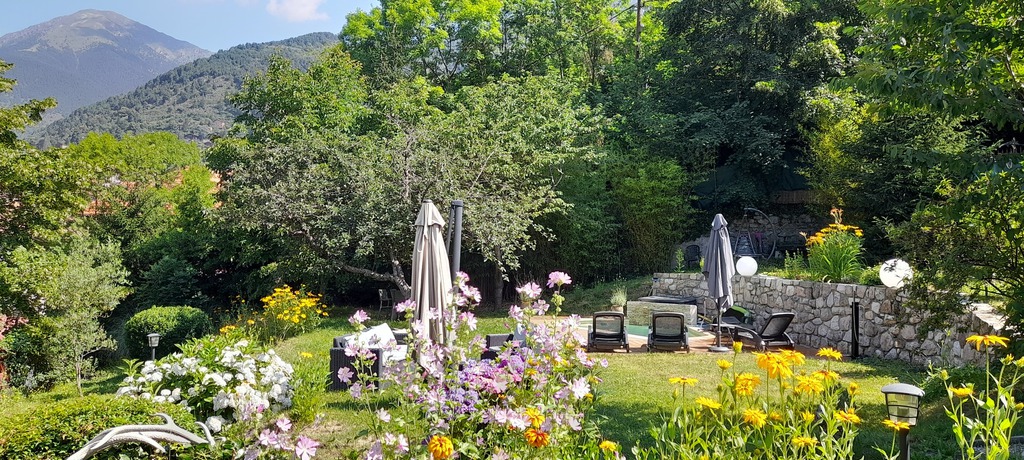 A disposition, une cuisine, un salon, salle à manger, le jardin, terrain de jeu de boules.